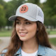 Custom Leather Patch Hat, Sytle: Adult Retro Trucker Cap, Color: Heather / Black, Shape: Circle