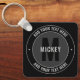 The key chain is made of metal and really sturdy. The flower design is really cheerful. The logo and colors are clear and crisp!