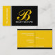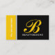 Bold monogram yellow black eye-catching business cards. An elegant, modern design, featuring your monogram/initial in yellow on black background and yellow, black, white stripes on the side. Click on “Customize it” to have a better result and choose color, and place for your initial.