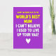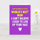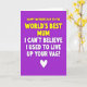Designed with a rich, uniform purple background, this card keeps the focus entirely on a two-part message arranged in stacked lines. The top line sits near the upper center in puffy-looking yellow sans-serif letters, giving the words a warm, family-forward tone that feels like a hug ❤️. Just below it, a second line in thick white lettering delivers a sharper, cheeky turn, like a friend teasing with a straight face while still standing close. The strong contrast between yellow and white makes the shift feel immediate, almost like a raised eyebrow in the middle of an affectionate moment. With no characters or scenery, the layout relies on spacing and color to suggest closeness and a little mischievous humor. The text is centered and evenly aligned, with generous margins that keep the message easy to read and visually balanced. A small white heart icon rests at the bottom center beneath the words, like a tiny seal of affection 🌼.