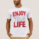 A striking motivational design featuring the phrase "ENJOY YOUR LIFE" in bold, distressed typography. The words "ENJOY" and "LIFE" are highlighted in red, while "YOUR" stands out in white, all set against a sleek black background. This design conveys a powerful and inspiring message to live life to the fullest, with a modern and impactful visual appeal