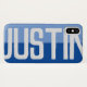 Have your choice of name shown boldly on a two-tone phone case. Example shows the name Justin. Personalise with your choice of short name.