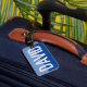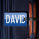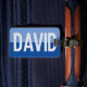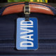 Personal name tag. Have your choice of name shown boldly on a two-tone luggage tag. Example shows the name David. Personalise with your choice of short name.