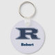 Bold Navy Blue Letter R Initial Monogram Keychain