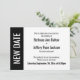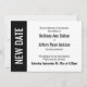 Here's a bold, modern card for notifying your guests if it's become necessary to change your wedding date. Use the template fields to add your personal details and make this unique, simple design your own. A color block along the left is black, matching the text and back of the card; "NEW DATE" appears in bold white over this strip on the left. All fonts and colors are also editable. Please reach out with any special requests or for customizing assistance. Other pieces with alternate wording are also available in the collection.