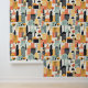 Bold orange, black, off white, and mint green city building pattern. Removable peel and stick wallpaper is perfect for apartments, rentals, and short term housing. Peel and stick wallpaper lets you upgrade your small space home decor and personalize your rental home with your unique design aesthetic in a landlord and renter friendly way. No more boring white boxes! ** Textured wallpaper works best with textured walls. **