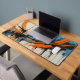 Upgrade your workspace with this visually striking desk mat. The artwork showcases a powerful mid-century abstract composition with sweeping orange and blue curves and sharp industrial lines. It provides a smooth working surface while adding a highly professional, energetic, and creative vibe to your desk environment.