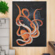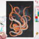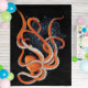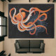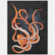 A bold and mesmerizing octopus illustration unfurls its flowing tentacles across a deep black background, intertwined with an intricate blue mandala pattern. Rendered in vivid orange with delicate detailing, this design blends ocean life with mystical geometry, creating a striking piece that feels both powerful and meditative. Perfect for marine life lovers, octopus fans, and those drawn to dramatic, statement-making designs..