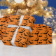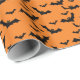 A vivid orange backdrop swarms with sleek black bats, creating a bold yet playful Halloween mood. Inspired by classic spooky silhouettes, this design balances festive fun with modern minimalism. Perfect for wrapping seasonal gifts with striking, high‑contrast style..