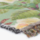 A quality printed throw has its advantages. This is a much finer weave throw than its loopier cousins, and though lighter, it is worth the investment for custom room accessorizing. The back is much prettier than the typical brown, and the fringe on the long sides very vivid, the selvage nicely done. Before photographing, I washed the throw in cold water, delicate, with a thicker woven throw the same size. On tumble dry low, this throw was dry in half the time as the other. This is a very practical quality if you use throws for furniture covers or to wrap up in frequently. The sleekness of the fabric makes it a great layer for accenting or protecting without the feeling of sitting on too much stuff. Perfect for napping or when you feel a light chill coming on. The color printing is beautiful and on this fabric, matched the design and color of my Photoshop image. This is an advantage for blending room fabrics and colors. The fringe on the short sides prints the colors from the design image and therefore varies from the side fringe. I streaked a white fractal line through the plaid pattern to give the illusion of weaving. This printed as crisp as an illusory thread, and put some white in the short side fringe, showing another advantage of print vs loomed- for artistic purposes, line lines, detail, and color integrity can be planned and preserved. My loomed throws have color limitations and more of a needlepoint texture. Print throws reproduce an exact image. The throw felt a little stiff straight out of the package, but this went away in the first delicate wash. Of course I searched the wash water for ink or bleeding and there was none.