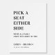 Bold Pick a Seat Either Side Wedding Seating Sign | Say "I do" to a modern wedding! Planning a wedding? You'll need modern calligraphy wedding day signs, wedding table decorations, and modern black style wedding unplugged wedding ceremony sign. We offer modern calligraphy styles for all your needs. Order on Zazzle and I'll help you create your personalized design on a wedding sign, card, or gift. Impress your guests with a unique touch!
