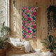 Bright pink and rich blue blooms burst across this colorfully patterned blanket.