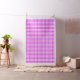 Stylish geometric fabric features a bold pink and white buffalo plaid. Hot pink, pink, and white squares form a classic gingham pattern.