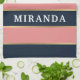 Stylish, feminine, bold modern stripes in pink and navy blue separated by smaller gold stripes. A customizable name template is featured on top of the pattern. Cute personalized gift with a feminine vibe.