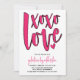 Modern typography Galentine's Day Party Invitation. Design features trendy typography script ''xoxo & love'' in bold pink and black lettering and your party / celebration details.