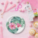 Bring island style to your tropical wedding bridal shower or special event with these watercolor floral wedding plates! Featuring a bold pink hibiscus, Aloha-style palm fronds, and lush Hawaiian flowers and foliage, these plates are perfect for beach weddings, destination weddings, and luau celebrations.