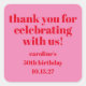 Bold Pink Red 50th Birthday Custom Thank You Square Sticker