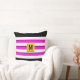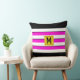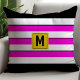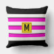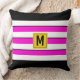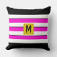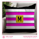 Freshen up your indoor or outdoor living spaces with this contemporary pillow that features modern color blocking, bold stripes, and a customizable initial. Bright colors in sunny hues of pink, yellow, and black will add a splash of fun to your living room, porch, or patio. Makes a perfect housewarming gift for new homeowners.