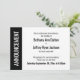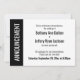 Here's a bold, modern card for notifying your guests if it's become necessary to change your wedding date. Use the template fields to add your personal details and make this unique, simple design your own. A color block along the left is black, matching the text and back of the card; "ANNOUNCEMENT" appears in bold white over this strip on the left. All fonts and colors are also editable. Please reach out with any special requests or for customizing assistance. Other pieces with alternate wording are also available in the collection.