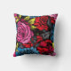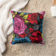 A bold maximalist pattern with bright red, pink, and blue flowers, electric green leaves, and grey goth accents.