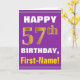 This simple birthday-themed greeting card design features a warm birthday wish like "HAPPY 57th BIRTHDAY, First-Name!" on the front, in bold text on a purple colored background. The birthday number has a faux/imitation gold-like coloring appearance. The name on the front can be customized. The inside features a customizable birthday message. A greeting card like this could be a fun way to deliver birthday wishes to somebody who is celebrating their fifty seventh birthday. [~Z0000277]
