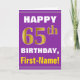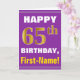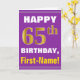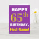 Bold, Purple, Faux Gold 65th Birthday w/ Name Card