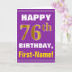 Bold, Purple, Faux Gold 76th Birthday w/ Name Card