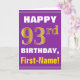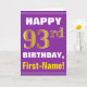 Bold, Purple, Faux Gold 93rd Birthday w/ Name Card
