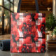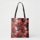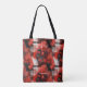 This bold red abstract tote bag features a striking geometric pattern layered with deep charcoal and black accents, creating a powerful and contemporary visual impact. Designed for those who love expressive, modern art, this tote stands out while remaining refined and wearable.