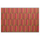 This simple yet decorative modern fabric design features a colorful retro abstract pattern of bold geometric stripes in colors of red, orange, brown, olive green, black and tan.