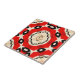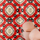This ceramic tile features a captivating geometric design that is both modern and reminiscent of traditional patterns. The vibrant red background serves as a dramatic canvas for the intricate white and black shapes that create a mesmerizing kaleidoscopic effect. At the heart of the tile, a white star-like pattern takes center stage, surrounded by symmetrical shapes that offer a sense of balance and harmony to the overall design. Radiating outward from this central motif are black shapes resembling arrows or pointers, adding an extra layer of complexity to the design. The tile's design draws the eye inward, inviting you to explore each detail. Its bold color palette and complex pattern make it a standout piece, perfect for adding a touch of uniqueness and style to any space. This tile beautifully blends the boldness of modern design with the intricacy of traditional patterns, making it a truly unique piece.
