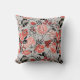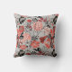 Bold Red Black Taupe Floral Pattern Throw Pillow