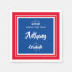 Class of, graduate's name, and school all in white on a blue background. Red and white border. The red and blue can be converted to your school colors very quickly and easily. Once personalized, if you "click to customize further", you can use Zazzle's easy design tool to modify. Please feel free to message me with questions. Happy to help!