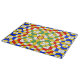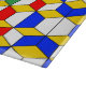This design features a mesmerizing geometric pattern in vivid colors, most of them primary. The original shape is a series of isometric squares, and they've been spun through a kaleidoscope feature to yield an interesting optical illusion of squares and angles.