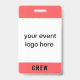 Customize this bright red orange volunteer event crew staff badge with your logo. If your logo is square, it will fill up the white space entirely. If your logo is not square, it will show on a neon orange background. The back of this badge can be personalized with the event name and date or year, or you can delete both to have an all red back. This simple, minimalist crew staff badge is ideal for special events, festivals, concerts and conventions.