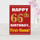Bold, Red, Faux Gold 66th Birthday w/ Name Card
