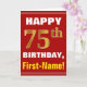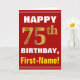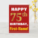 Bold, Red, Faux Gold 75th Birthday w/ Name Card