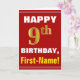 Bold, Red, Faux Gold 9th Birthday w/ Name Card