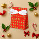 This radiant red favor bag sparkles with rows of golden Christmas trees, finished with a crisp white ribbon bow. Inspired by festive luxury, the design blends warmth and elegance, making it ideal for holiday parties, weddings, or seasonal treats.