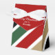 This bright and colorful Holiday favor box will grab attention at any Christmas party or gathering! Bold stripes in colors of green, red, white, antique gold and black make it a stand out. The solid red front flap holds your custom text in white. All the text may be easily customized. Thanks to MilachiDesigns on etsy.com for the pattern used in this design.