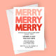 Bring modern cheer to your holiday gathering with this eye-catching party invitation! The design features the word “MERRY” stacked three times in bold, all-caps lettering that shifts from a soft blush pink at the top to a deep festive red at the bottom, creating a fun ombré effect. Set against a clean white background, the minimal yet striking style makes your event details easy to read and the invitation both contemporary and festive. Perfect for Christmas parties, office holiday celebrations, or family gatherings, this customizable card lets you add your own date, time, location, and RSVP details. A simple, stylish way to spread holiday cheer!