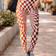 Bold red and orange optical illusion pattern with retro geometric energy. This dynamic checker swirl design creates a striking visual effect, perfect for standout fashion and statement styling. Ideal for modern, artistic, and edgy looks.