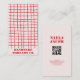 Bold Red Pink Check Pattern QR Code for Handmade Business Card