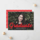 Simple and stylish graduation announcement featuring the graduate's horizontal photo with "Graduate" in a bold red script. Personalize the photo graduation announcement by adding the graduate's name, school name, and graduation year. The announcement reverses to display a green and white geometric arch pattern.