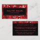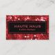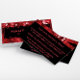 A bold business card design featuring an image of red sequins with black placard. A versatile business card perfect for many professions including fashion designers, beauty salons, spas, bloggers, makeup artists, hairstylists, party planners, event planners, wedding coordinators, fashion consultants and more.