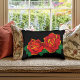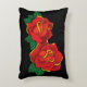 Bold Red Traditional Roses Tattoo Black Accent Pillow
