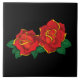 Bold Red Traditional Roses Tattoo Black Ceramic Tile