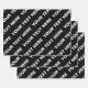 Bold Repeating Editable Name | Simple Black White Wrapping Paper Sheets