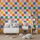 Bold Retro Checkerboard Multicolored Wallpaper
