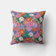 Bold retro floral pattern throw pillow for colorful bedroom decor in a joyful dopamine decor style, featuring a reversible design with a bright vintage inspired floral print on the front and a warm orange coordinate on the back pulled directly from the orange tones in the artwork for a perfectly matched finish, with cool blue accents that keep the palette feeling fresh. This retro botanical look makes a statement in an eclectic bedroom or living room.
